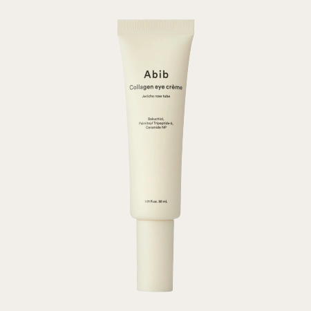 Le tube de rose Jericho de Collagen Eye Creme d’Abib hydrate et ferme profondément la zone délicate des yeux avec du tréhalose, de l’acide hyaluronique, du bakuchiol et du collagène. Elle apaise l’irritation, réduit l’apparence des ridules et restaure l’élasticité de la peau. Cette formule légère